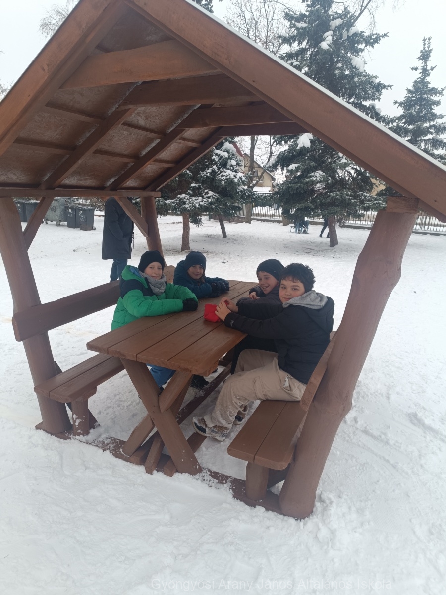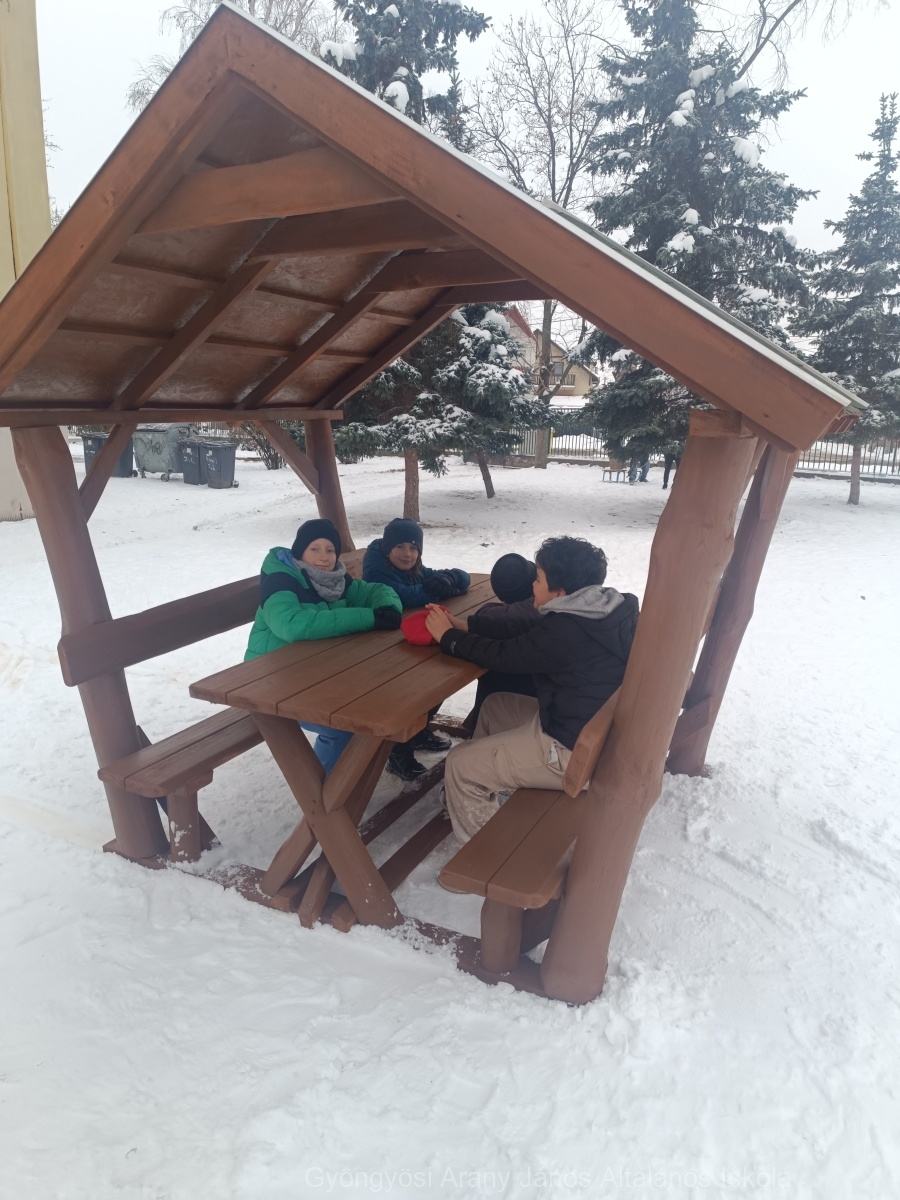 Örömmel számolunk be arról, hogy iskolánk udvarára két masszív és szép fedett pavilon érkezett a fenntartó támogatásával, melyeket az 5. évfolyamos diákok birtokba is vettek, rögtön az elhelyezésüket követően. A pavilonok egyrészt barátságosabbá teszik az udvari környezetet a tanulóink számára, másrészt majd a május-júniusi kánikulában egy kis árnyékot is biztosítanak nekik.
