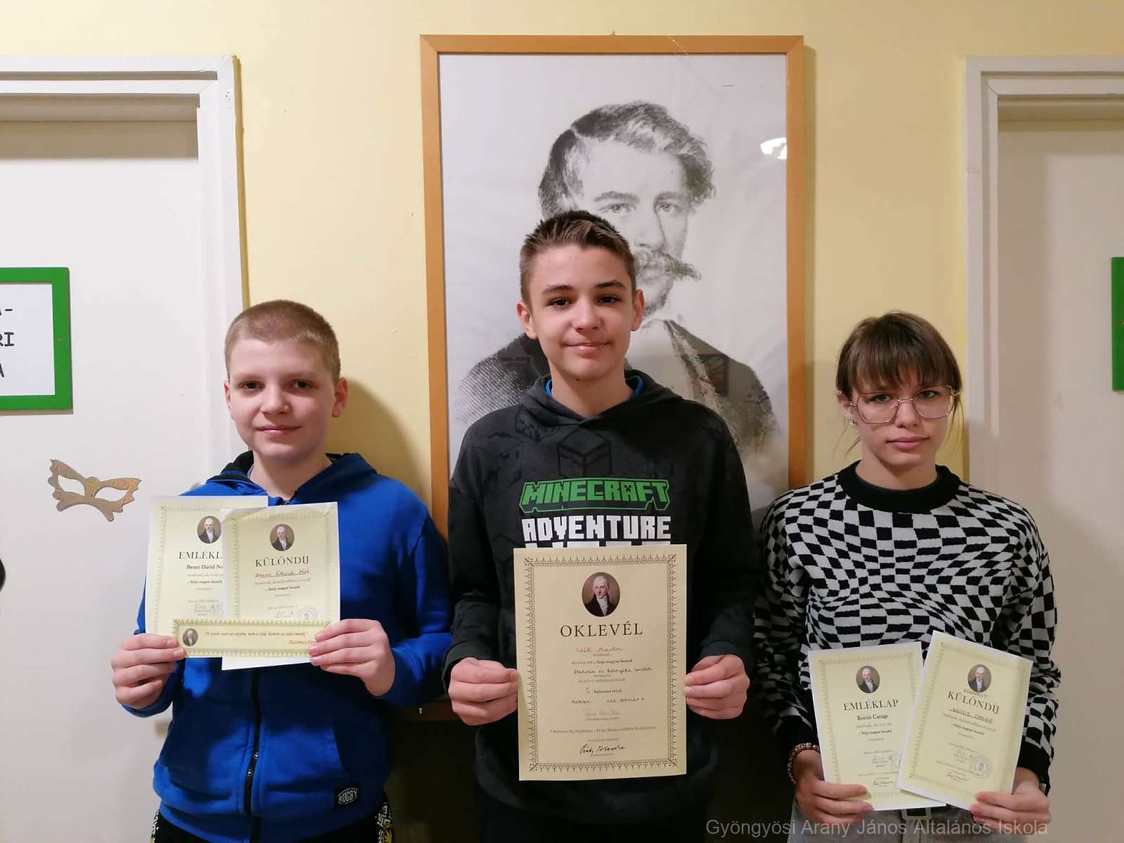 Az 5-6. évfolyamosok versenyében Czéh Martin 6. b osztályos tanuló 1. helyezett, Benei Dávid 6. b osztályos tanuló pedig különdíjas lett.