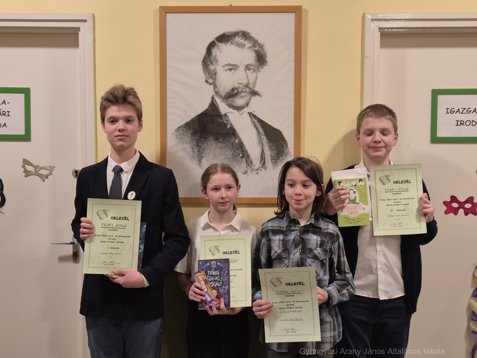 Különdíj: Molnár Szonja 7. o.; Gyöngyösi Arany János Általános Iskola