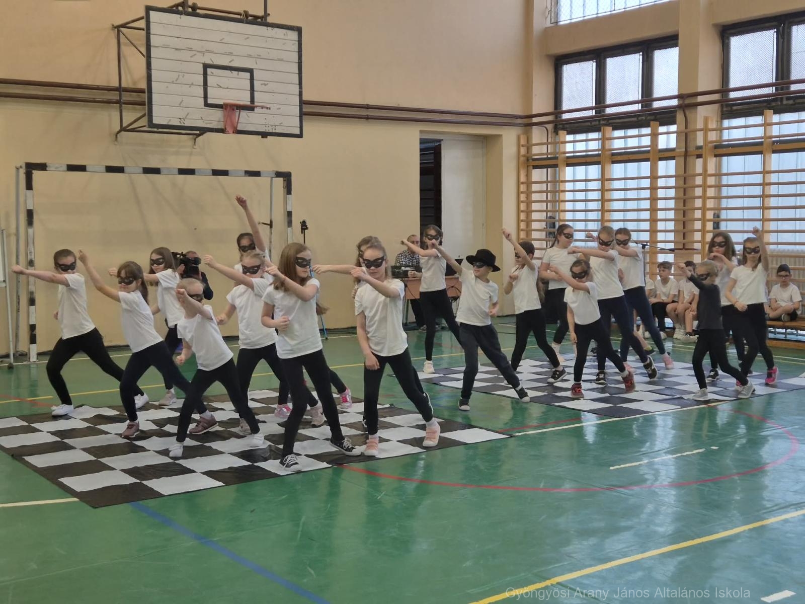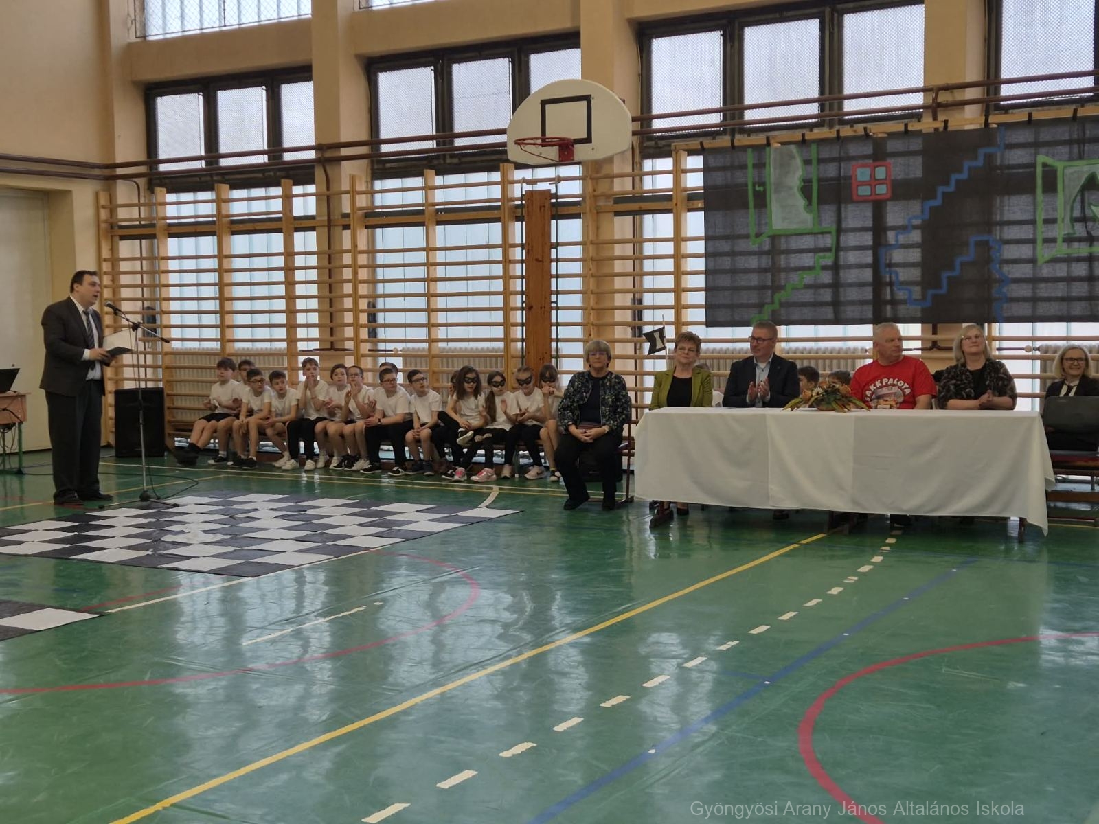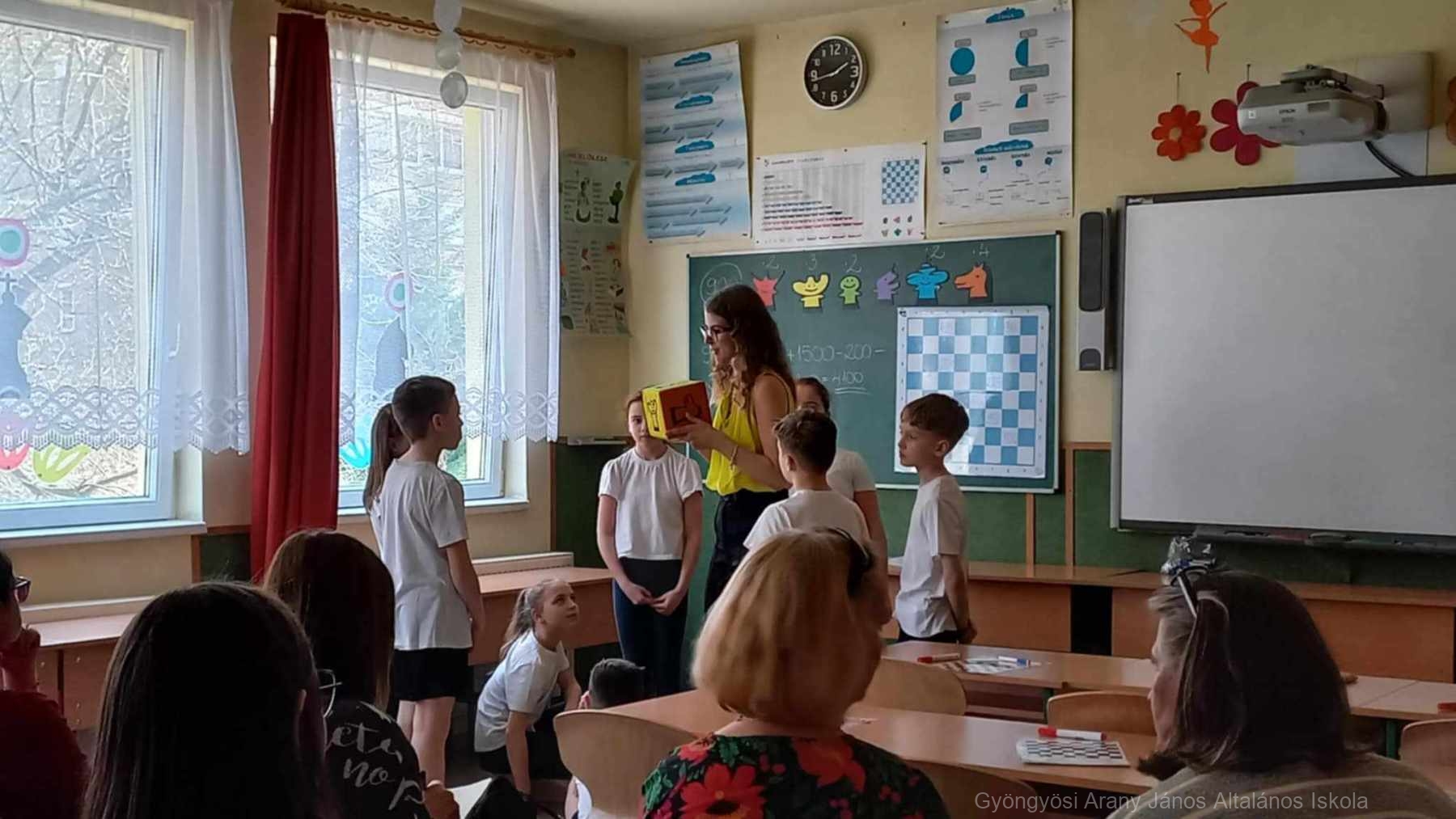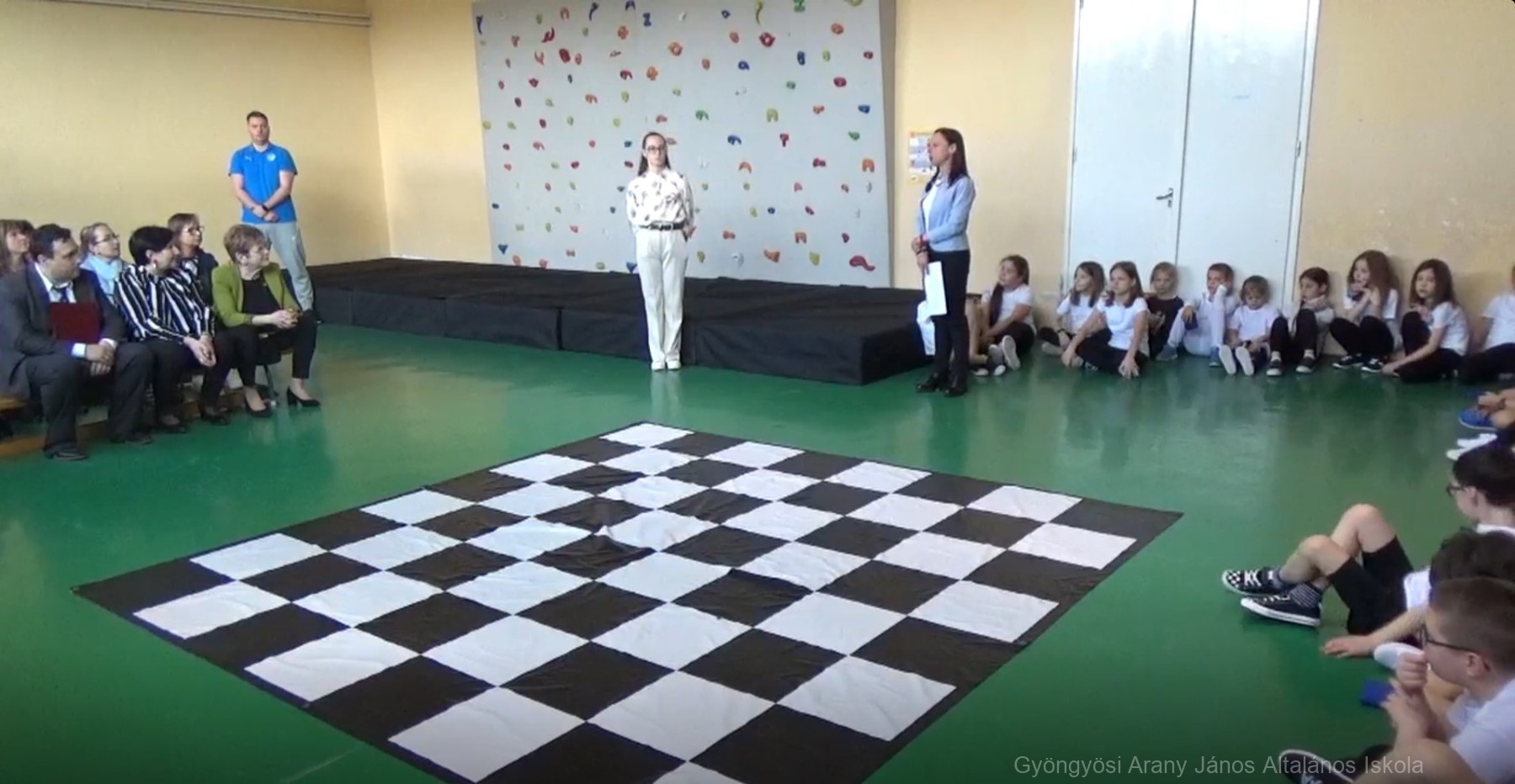 Őryné Gombás Csilla – Polgár Judit Módszer alkotója, módszertani szakértőnek – Szókovács Péter -Gyöngyös város polgármesterének – és Kerekes András – intézményünk igazgatójának – köszöntőjét követően az 1.a és 4.b osztály lány tanulóinak Sakk Táncát, illetve a két osztály Cikcakk sakk dal angol nyelven történő közös éneklését tekinthették meg a meghívottak.
