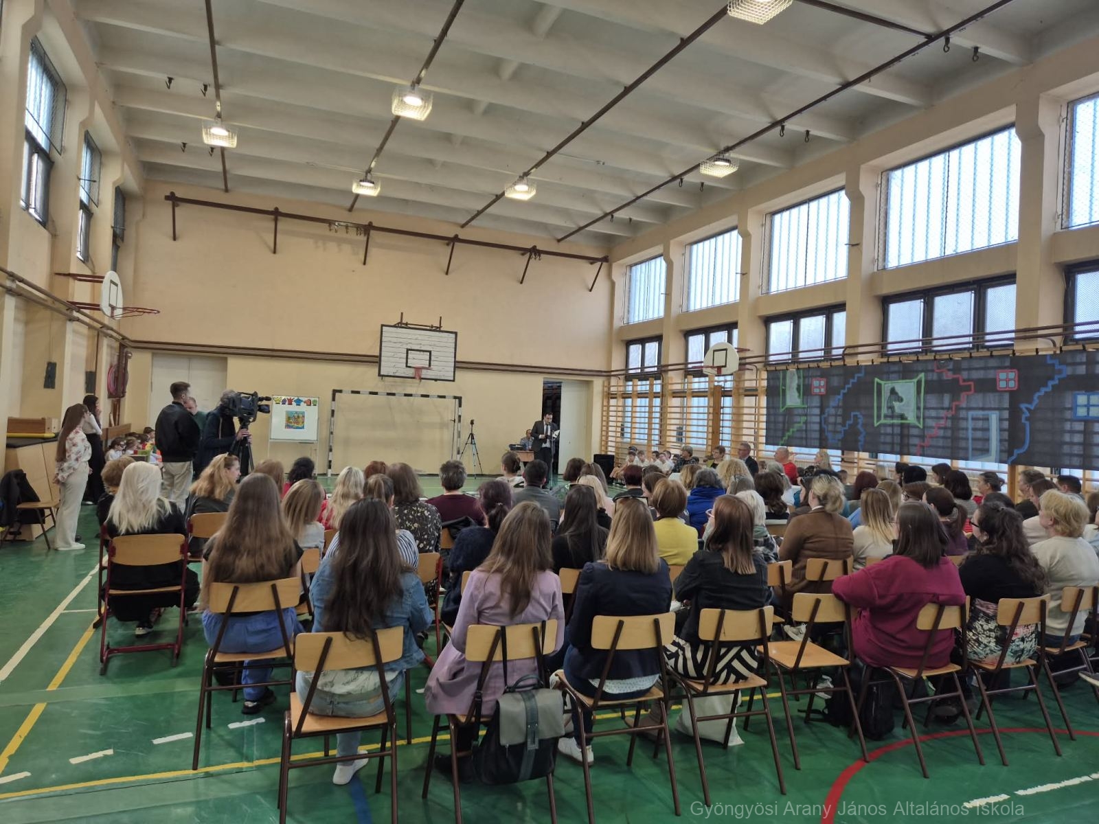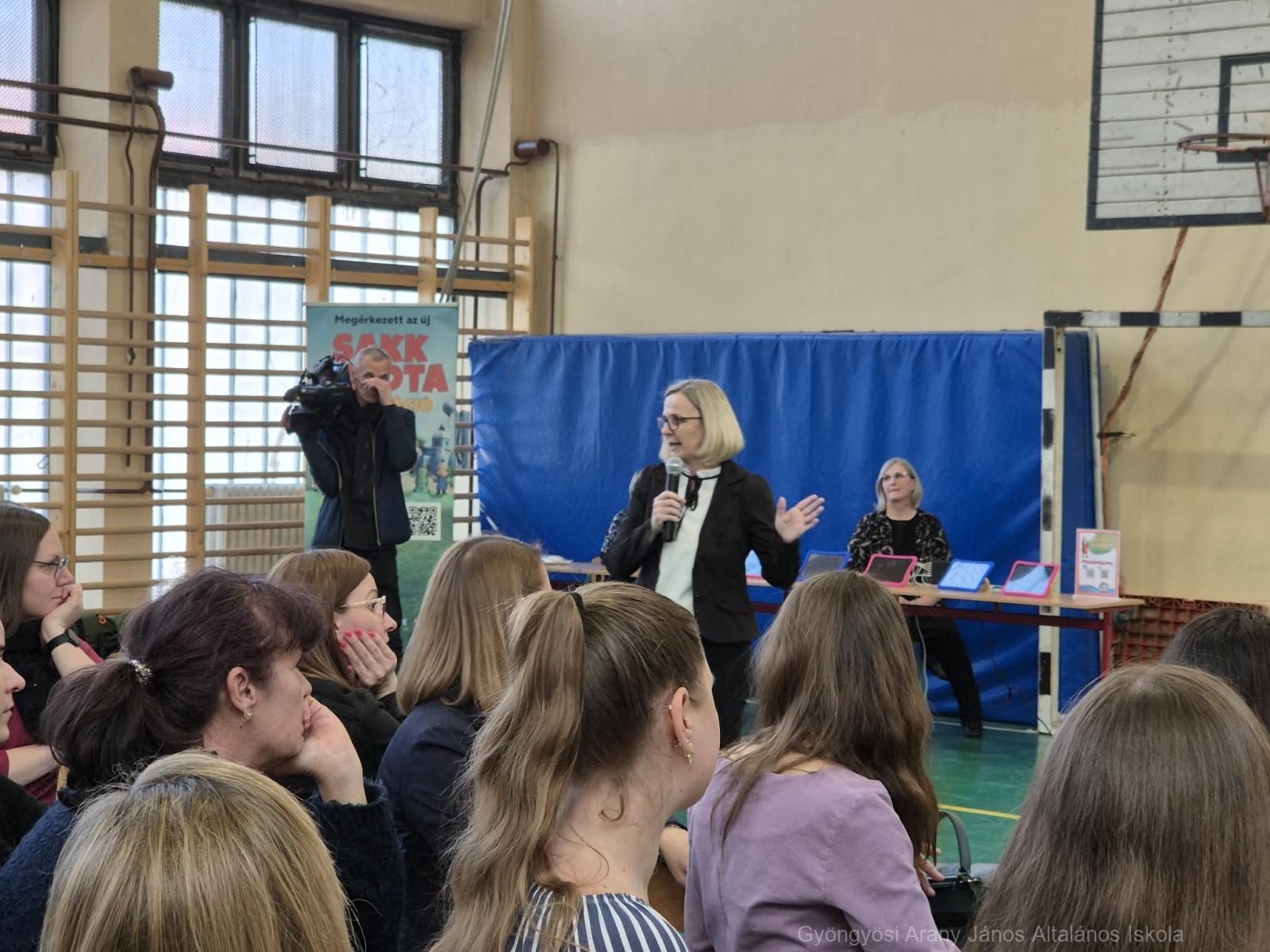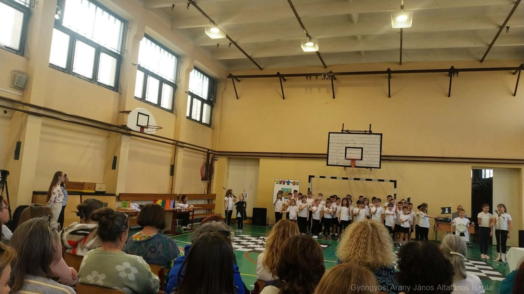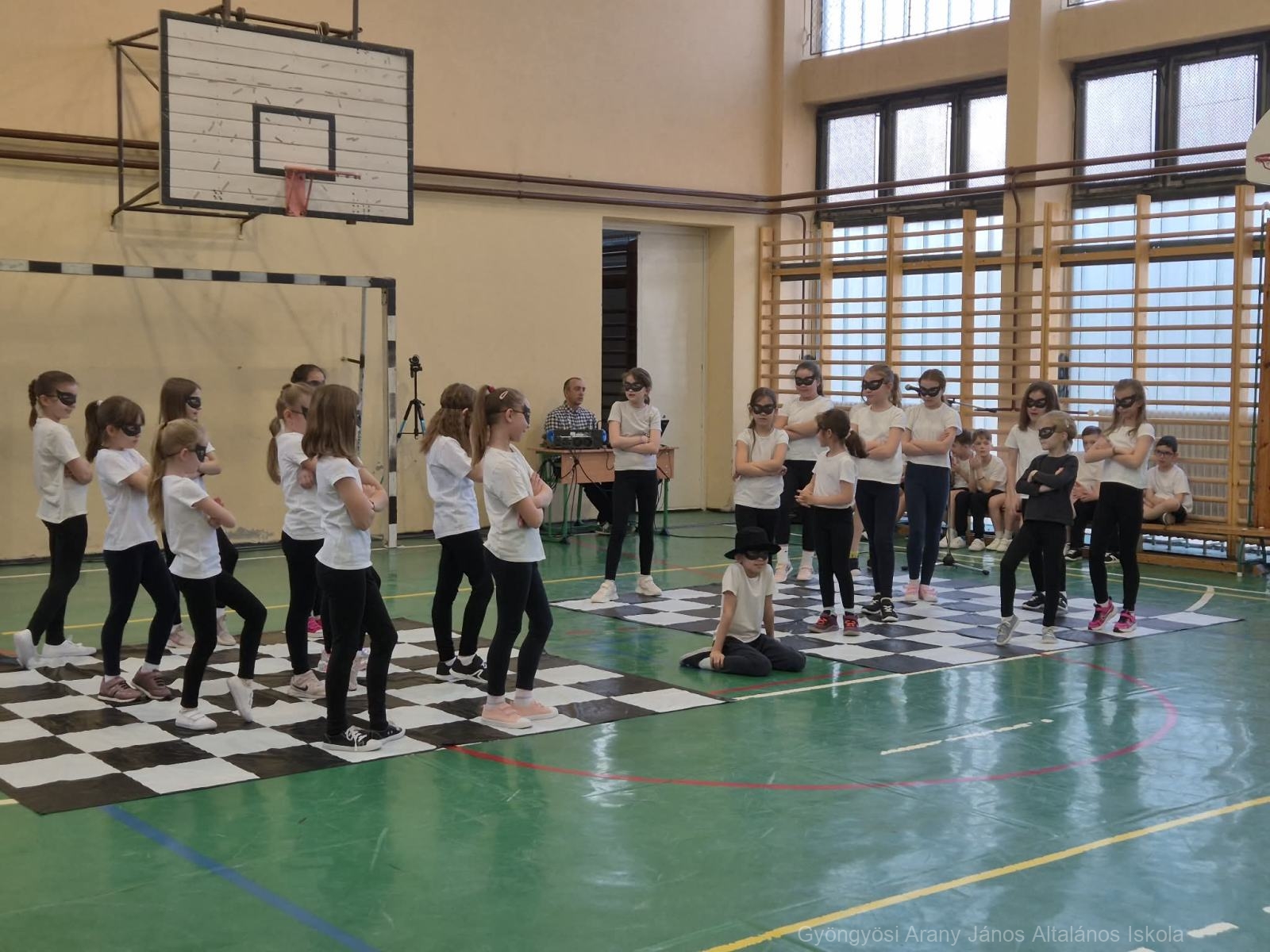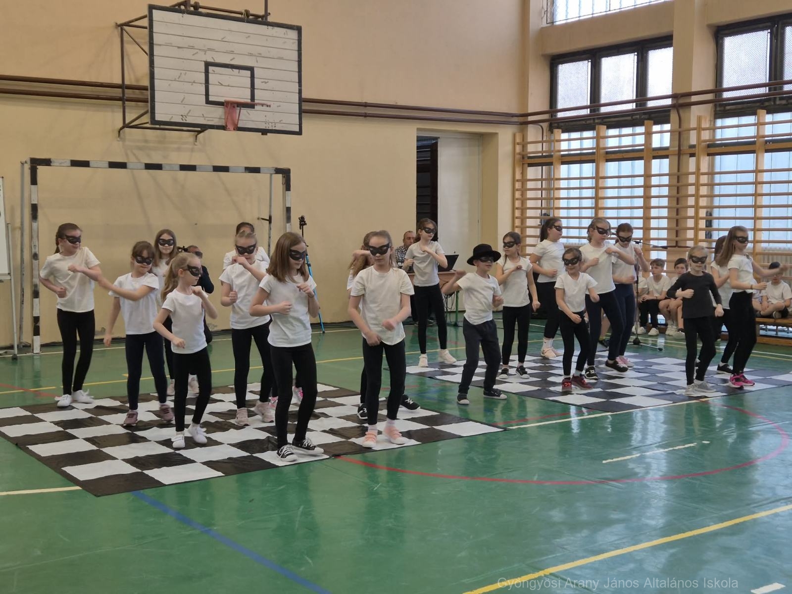 Őryné Gombás Csilla – Polgár Judit Módszer alkotója, módszertani szakértőnek – Szókovács Péter -Gyöngyös város polgármesterének – és Kerekes András – intézményünk igazgatójának – köszöntőjét követően az 1.a és 4.b osztály lány tanulóinak Sakk Táncát, illetve a két osztály Cikcakk sakk dal angol nyelven történő közös éneklését tekinthették meg a meghívottak.