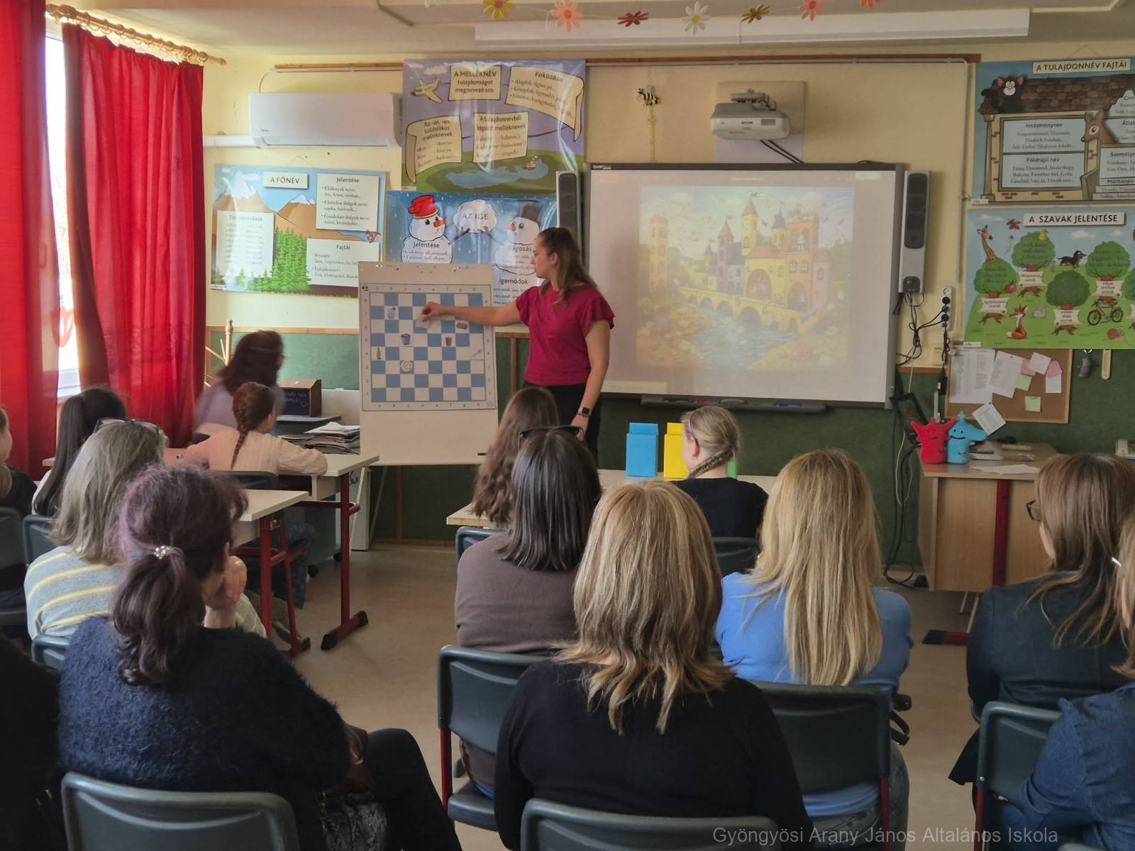 A megnyitó után vendégeink egy prezentáció segítségével nyerhettek bepillantást a Polgár Judit Módszerhez kapcsolódó – a 2024/2025-ös tanév II. félévétől napjainkig felölelő időszakra vonatkozó – pedagógiai munkánkba.