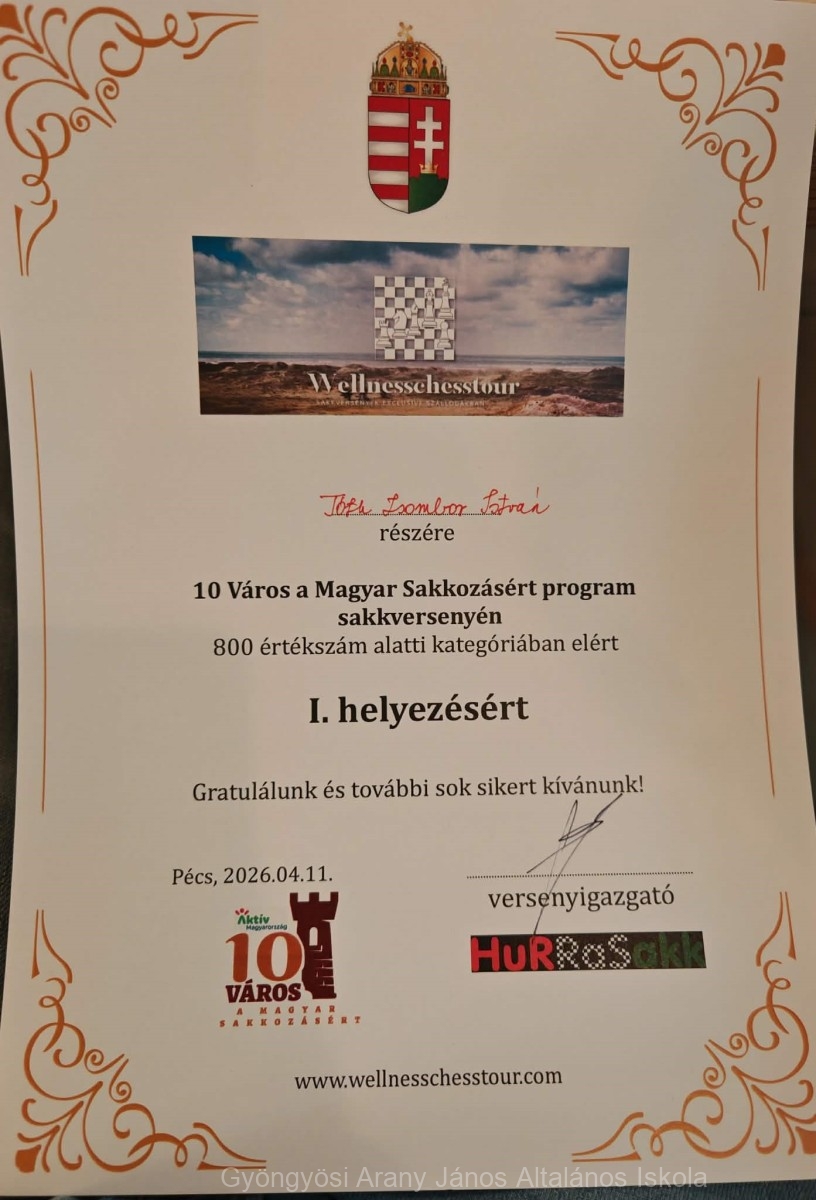 Iskolánk tanulója, Tóth Zsombor István (1.a) 800 értékszám alatti kategóriában első lett.
